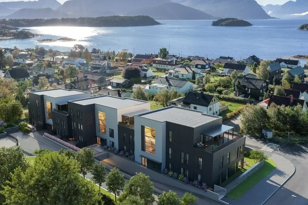 Disse 19 flotte leilighetene som har utsikt over Storfjorden, ligger på Vegsundet i Ålesund.